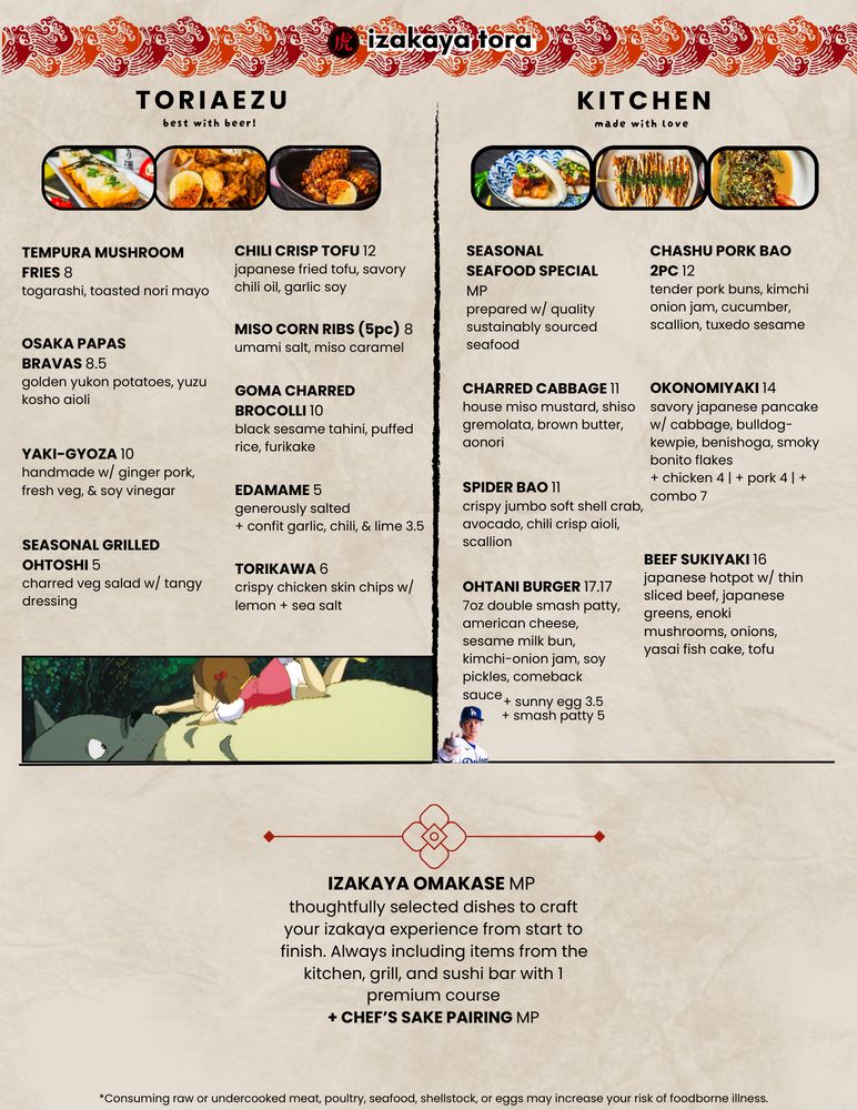 For brunch lovers, the Hinas Garden Board offers a stunning presentation of seasonal roasted vegetables, while the Wagyu Beef Tartare promises an elevated tasting experience. The casual atmosphere encourages sharing plates, making it perfect for groups or a late-night outing. With options for all diets, including pescatarian and vegan, and a selection of unique sakes, Izakaya Tora truly embodies a modern izakaya experience you won’t want to miss.